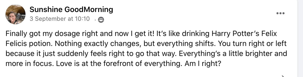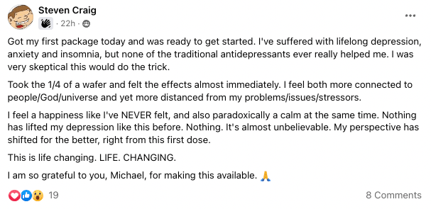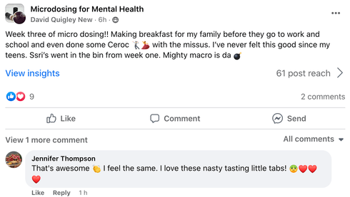 You can share stories, encouragement and be encouraged by the great people in the group to get the most out of your microdosing experience!